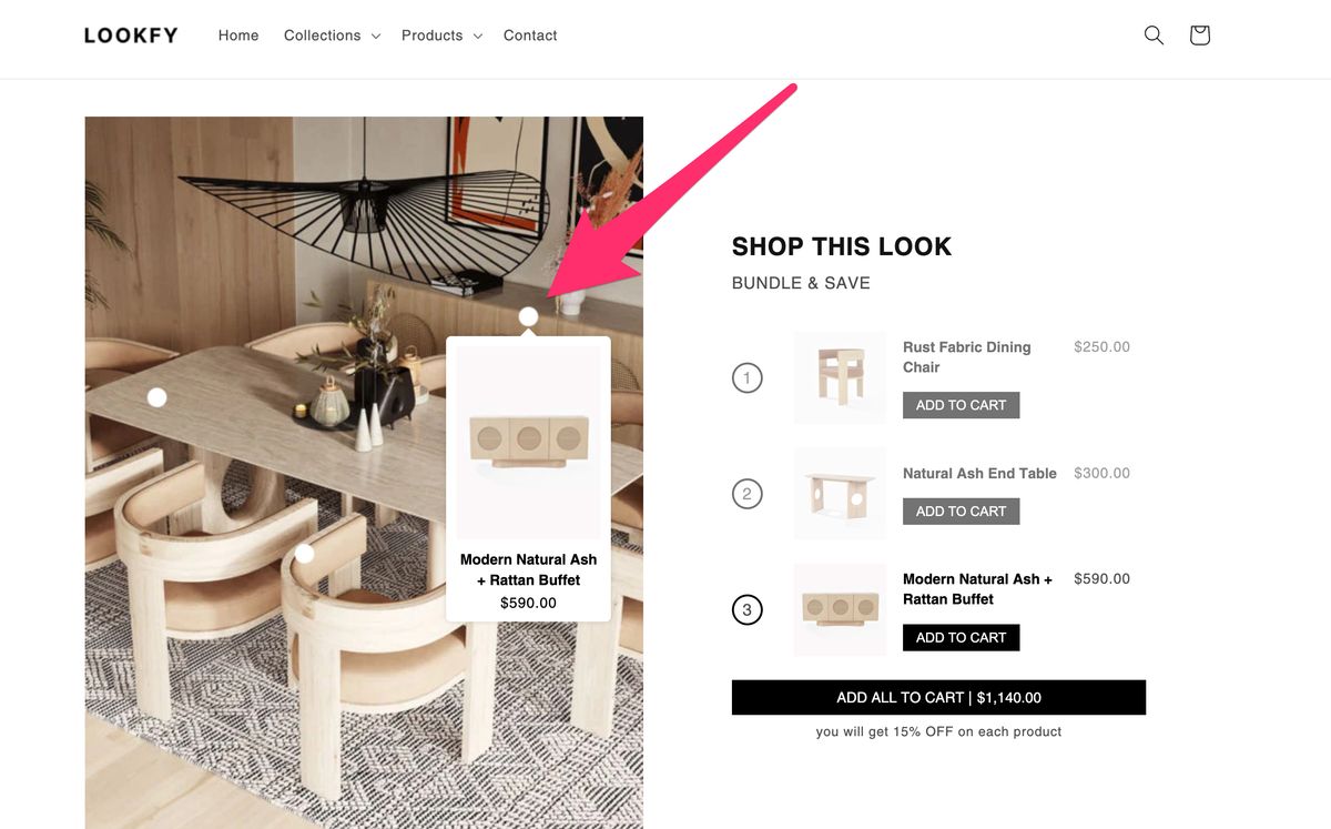 - ライフスタイル商品:インテリアやアクセサリーを組み合わせた「Shop the Look」ギャラリーを活用し、関連商品を提案。