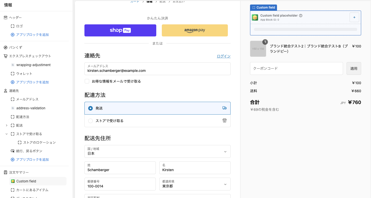 設定したルールはチェックアウトのカスタマイズ画面で追加することで利用できます。
