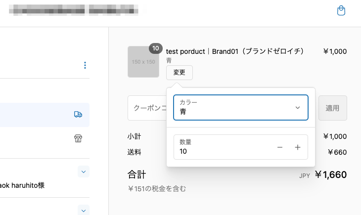 いちいちカートに戻らなくても、チェックアウト画面で変更できるので、購入体験が向上するかもしれません。