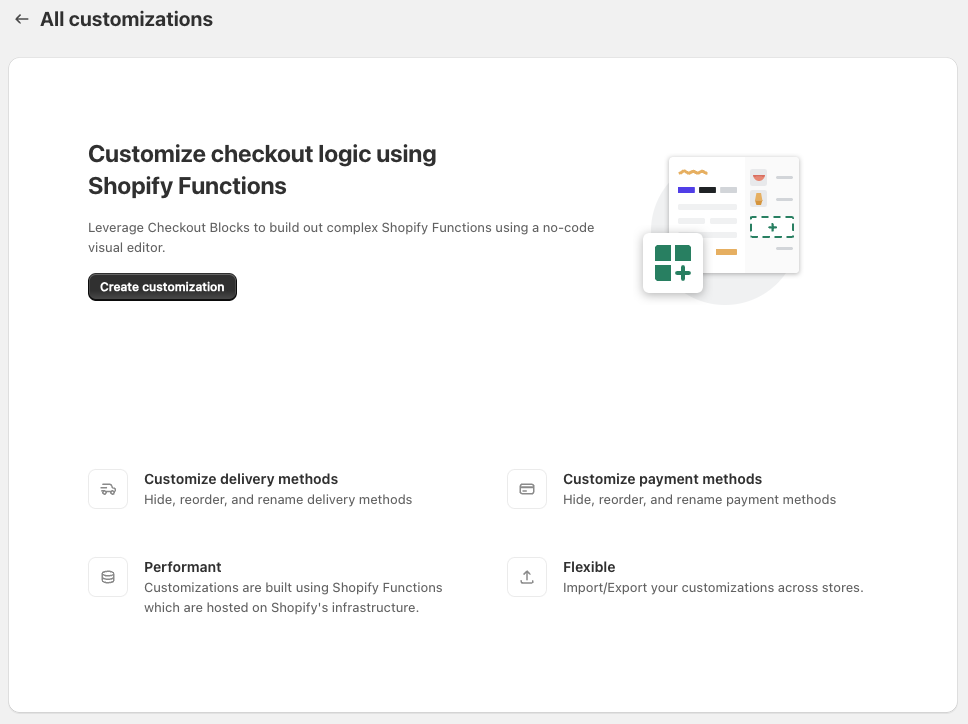 - Shopify Functions(Customizations, Discounts)