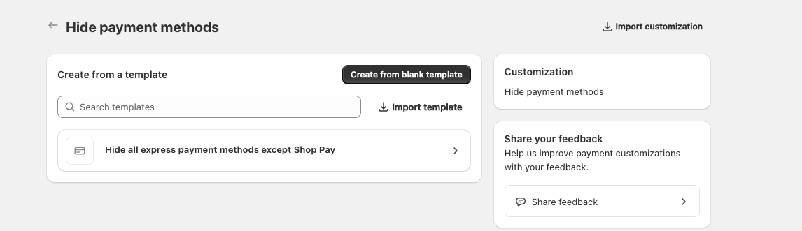 Shop Pay以外を非表示するルールのテンプレートがあるみたいです。