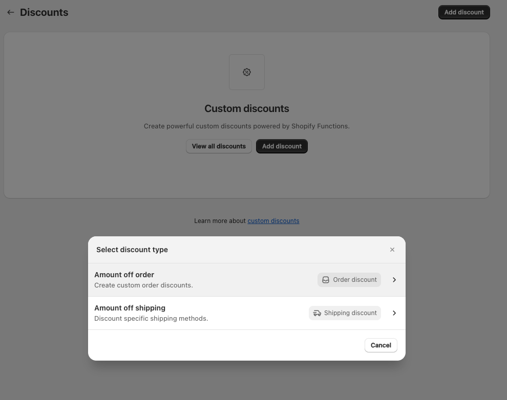 Discountsでは、カスタムディスカウントの設定ができます。