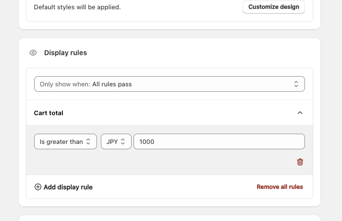 -> Cart totalが1000円以上の場合に表示する