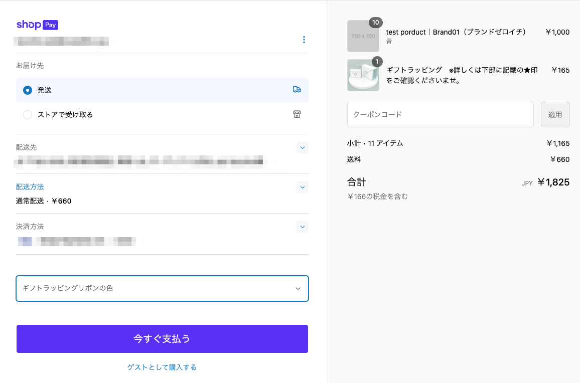 実際のチェックアウト画面での表示例です。