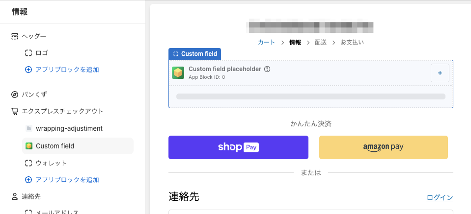 作成したブロックはチェックアウトカスタマイズ画面から任意の場所に配置することができます。