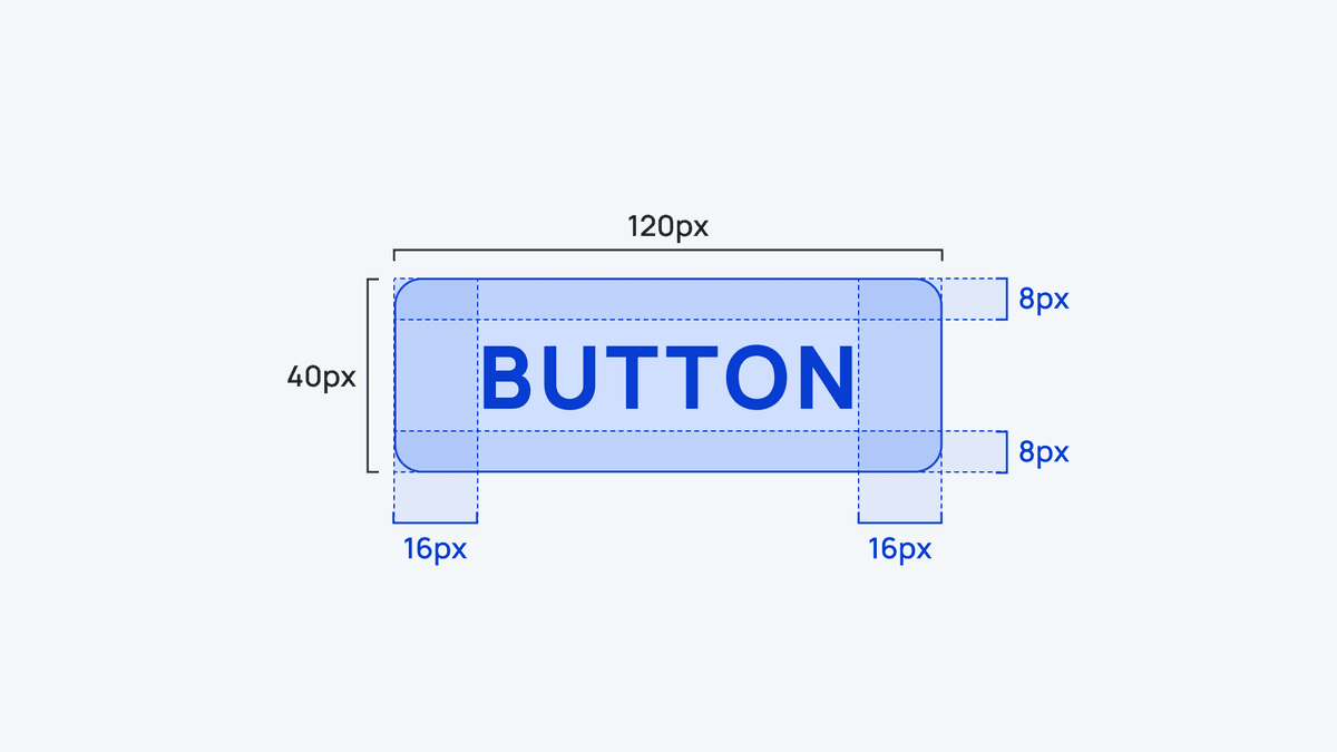 8pxグリッドシステムを使って設計されたボタンは、均一なパディングとサイズを持ち、視覚的な一貫性を実現します。 例えば、上下のパディングを8px、左右を16pxに設定することで、デザイン全体がバランスよく見えるようになります。 これにより、複数のボタンが並んだ際も一貫性が保たれ、ユーザーにとって見やすく操作しやすいUIが提供されます。