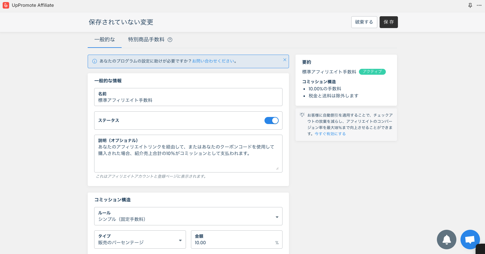 ※画像出典:ShopifyにUpPromoteインストール後の設定画面